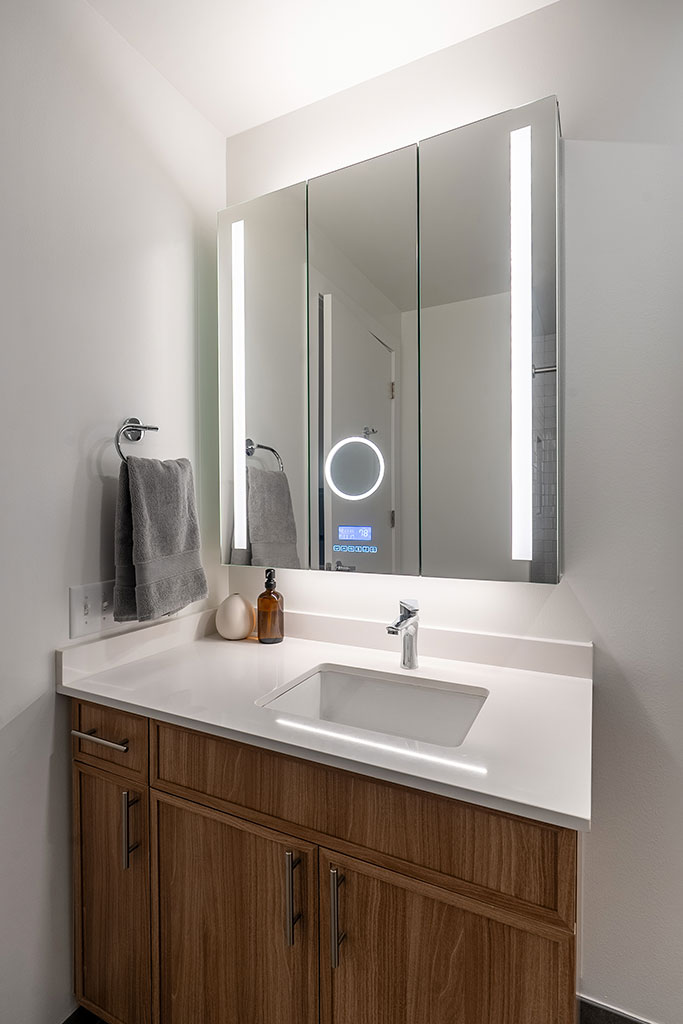Upgrade your multifamily rental properties with our premium bath amenities. Our offerings include state-of-the-art smart medicine cabinets with built-in Bluetooth speakers and defoggers, energy-efficient LED lighting, sleek bath hardware, and more. Elevate the bathroom experience for your tenants, ensuring convenience, luxury, and modernity. Impress your residents and stand out in the competitive rental market with our high-quality, innovative bath solutions.
